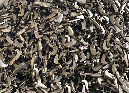 鍛打釜卡子適用于設計溫度高于-20℃~200℃,設計壓力小于等于1.0 MPa的搪玻璃設備,材料選用35鋼表面做鍍鋅防腐處理。
