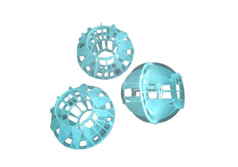 聚丙烯空心球是采用聚丙烯塑料成球,由兩個(gè)半球合成一個(gè)球形,每個(gè)半球上開(kāi)有12個(gè)半扇形葉片,兩個(gè)半球的扇形葉片相互錯(cuò)開(kāi)。比其他球形填料的比表面積大。是水處理設(shè)備中廣泛采用的一種新型有效塔器填料。廣泛用于國(guó)內(nèi)電力、化工、造紙、環(huán)保等到行業(yè)在脫碳、脫碳酸、油水分離、海水淡化、純水、廢水、廢氣處理等裝置中使用。